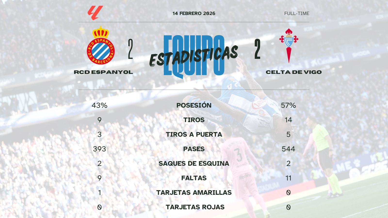 Espanyol 2-2 Celta: Reacción tardía y empate con sabor a supervivencia